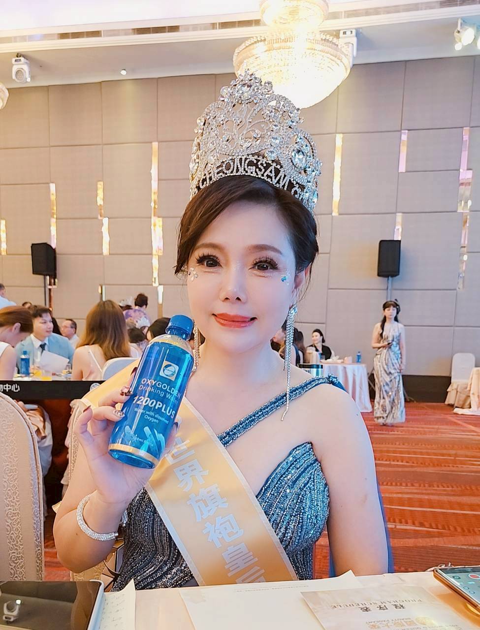 天璣生技科技股份有限公司以「健康、美麗與幸福」為品牌核心價值,長期關注女性的自信與健康美麗,特別贊助此次國際賽事,展現企業對文化推廣與社會公益的積極支持。大會特別以紅毯星光大道邀請「高登氧之父」- 天璣生技曾憲群董事長進場與會,現場氣氛熱烈。活動中多次播放天璣生技企業形象影片,展現品牌精神與科研實力,令與會嘉賓深受感動。多位貴賓更對高登氧飲用水(OXYGOLDEN)讚不絕口,盛讚其口感清甜、能量充沛。